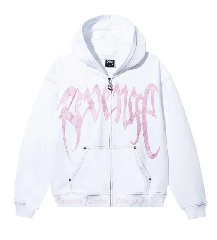 Revenge Xxxtentacion Kill Contrast Zip Up Hoodie White/Pink