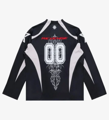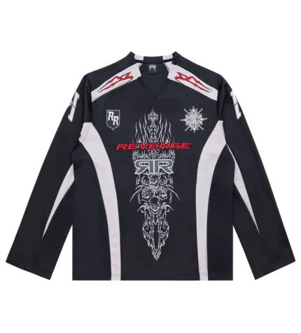Revenge Distressed Washed Embroidered Crewneck Charcoal