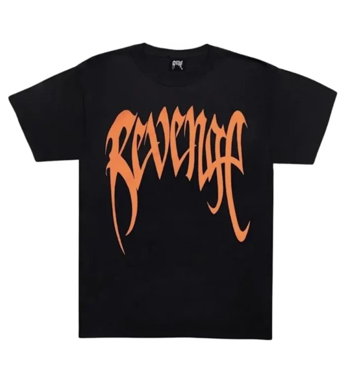 The Revenge Orange Arch Logo Tee in Black showcases the iconic arch logo design with bold streetwear style and everyday comfort.