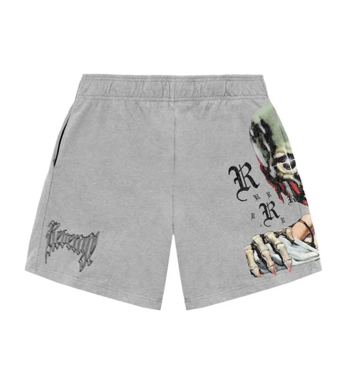 The Revenge Paralysis Shorts in Heather Grey blend bold graphic detail with premium comfort for an essential streetwear staple.