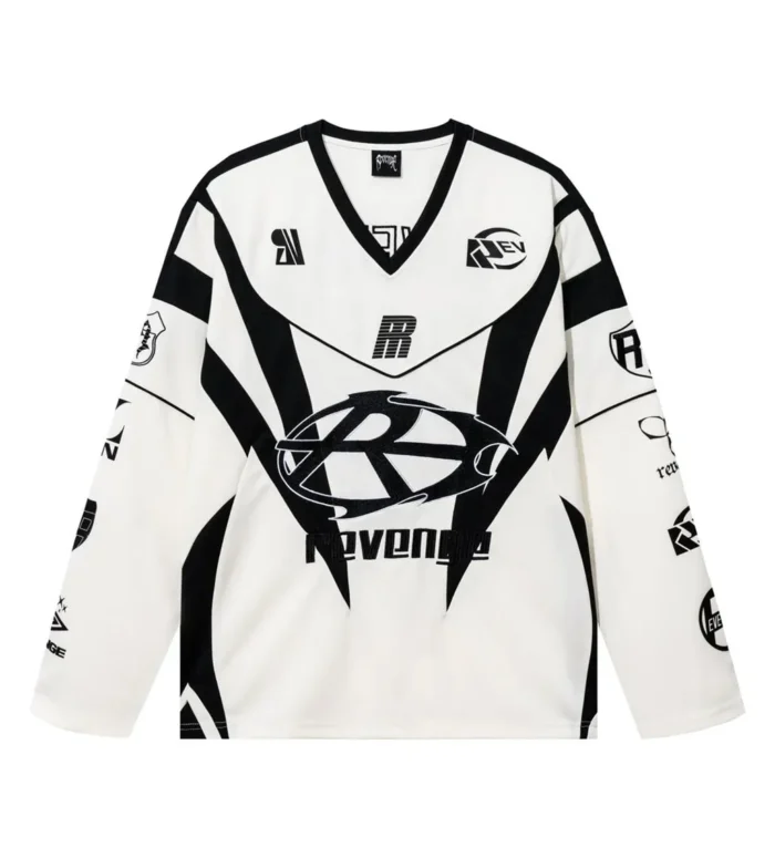 The Revenge Racer Patch Jersey Cream delivers motorsport-inspired energy with bold patches, breathable comfort, and a clean neutral base.
