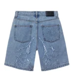 The Revenge Spider Web Embroidered Denim Shorts in Indigo feature bold embroidery and premium denim for a standout streetwear look.