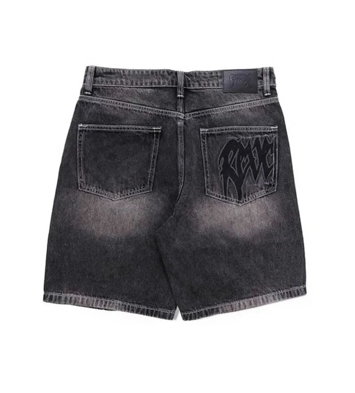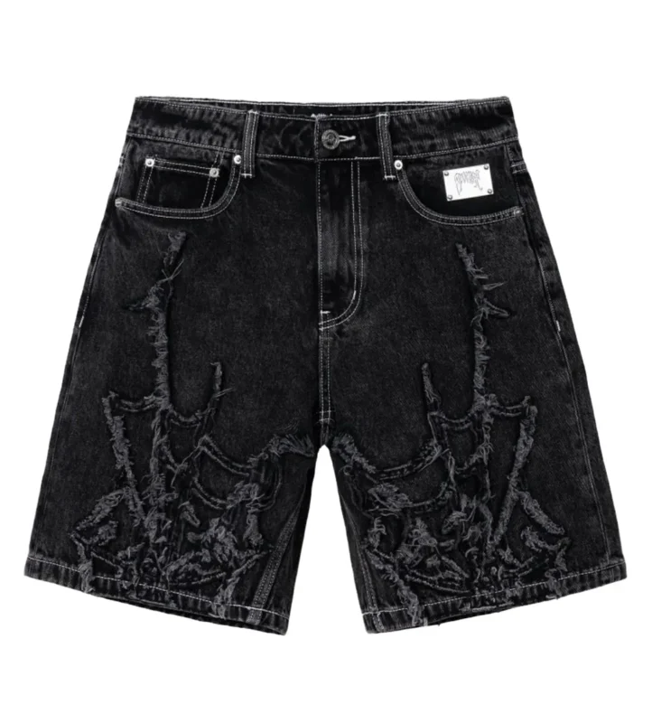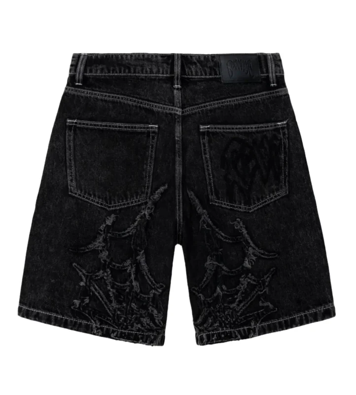 Revenge Spider Web Embroidered Denim Short Black