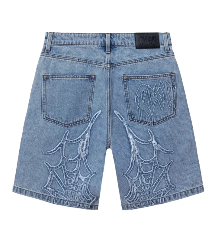 Revenge Spider Web Embroidered Denim Short Indigo